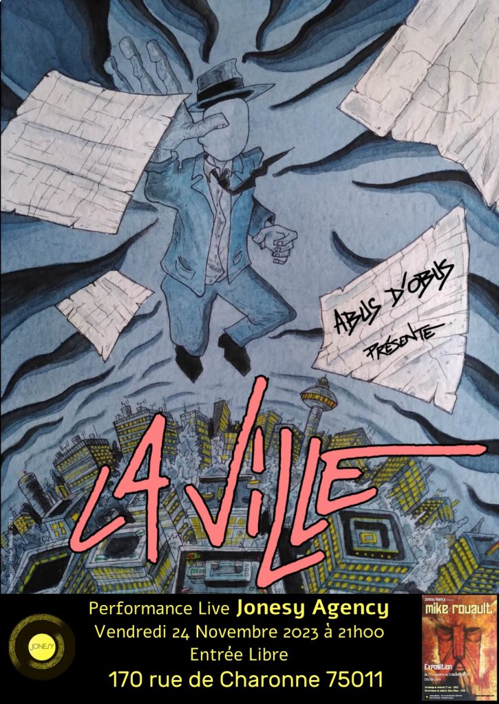 « La Ville » décrit l’itinérance et l’espoir d’un homme au cœur d’une ville la nuit. Avec pour point de départ une boite de nuit bondée et pour finalité des retrouvailles dans un parc désert au petit matin. Course contre la montre. La Muse se fait la belle en laissant quelques indices. Une photo. Une adresse. Jeu de piste et marivaudage. Notre héros est tenace et profondément amoureux. Il parcourra la cité et se laissera enivrer par son architecture et ses rencontres de passage. Obstiné. Fou. Exalté. A moins que cette rencontre passionnelle ne soit le fruit de son imagination.